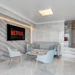 Mit einem Sofa ausgestattet, verfügt diese Unterkunft über einen Flachbildfernseher mit Satellitenkanälen und ein Fernsehen mit mehreren Kanälen und ein Bügeleisen/Bügelbrett. Außerdem können Gäste eine Klimaanlage genießen. Das Apartment bietet 1 Schlafzimmer. Hier werden außerdem 1 Bad sowie eine begehbare Dusche und eine getrennte Toilette angeboten. Außerdem finden Sie hier einen Haartrockner, Morgenmäntel und Handtücher.
